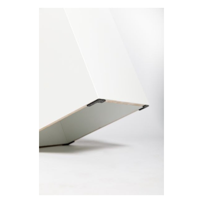 Våra vita piedestaler är tillverkade av MDF och färdigställda med ett högkvalitativt, matt plastlager. Denna finish är reptålig, färgäkta och ger piedestalen extra eleganta hörn och ett professionellt utseende. Färgen ligger nära RAL 9016 (trafikvit), en ljus, neutral vit nyans. Med varsam hantering behöver du inte oroa dig för skador. Dessa vita podier är utformade för att hålla sig vackra i många år framöver. Våra podier är försedda med robusta, specialtillverkade filtkuddar, 4 mm tjocka. Detta ger extra skydd åt både podiet och golvytan.