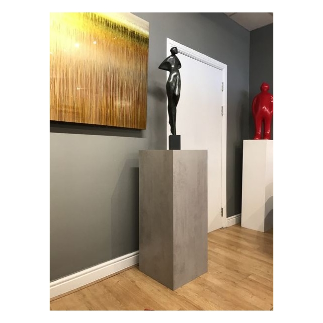 Podiet i betonglook är gjord av en 18 mm tjock spånskiva som är försedd med en tryckt dekor. Detta piedestal kan man på avstånd inte särskilja från ett äkta betongpiedestal.