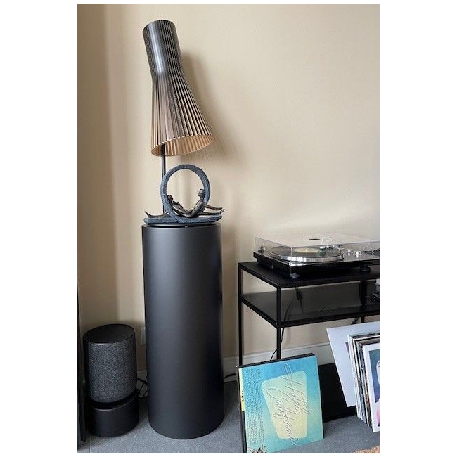 Runda piedestal tillverkas av konstmaterial. Ytan är utan kanter och fogar och kan sprutas i alla färger. För de svarta piedestalerna använder vi färgen RAL 9005. Fram till augusti 2024 sprayades våra färgade piedestaler/podier med en halvblank lack. Detta gav ett snyggt utseende, men vi var ändå inte helt nöjda. Det är anledning till att vi kommer att spraya våra färgade podier med matt lack som standard fr o m september 2024. Detta ger ett lyxigare utseende och är hållbart då ytan tål repor bättre samt att matt är den nya, tidlösa trenden.