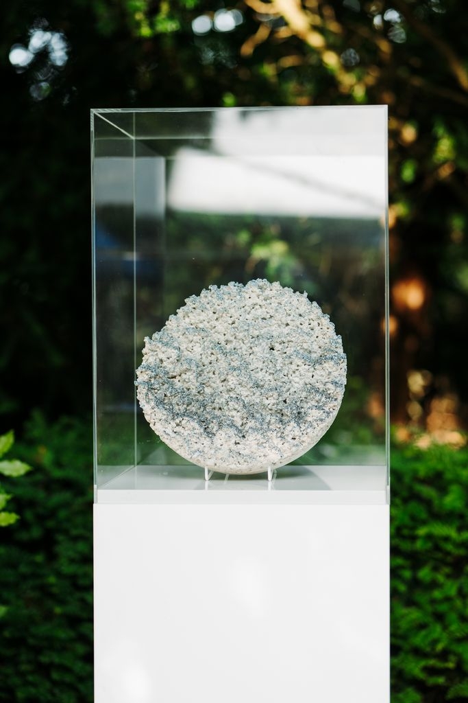 År 2024 levererade vi 35 vita podier med displaykåpor av plexiglas, alla lämpliga för utomhusbruk. Kunden var så nöjd med resultatet att de omedelbart beställde ytterligare 25 exemplar med displaykåpor till en ny utställning 2025.